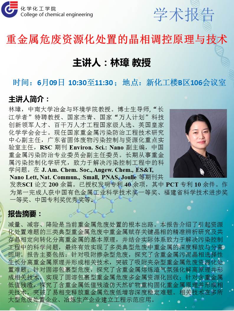 學(xué)術(shù)地點 新化工樓B區(qū)106會議室 主講人 林璋 教授