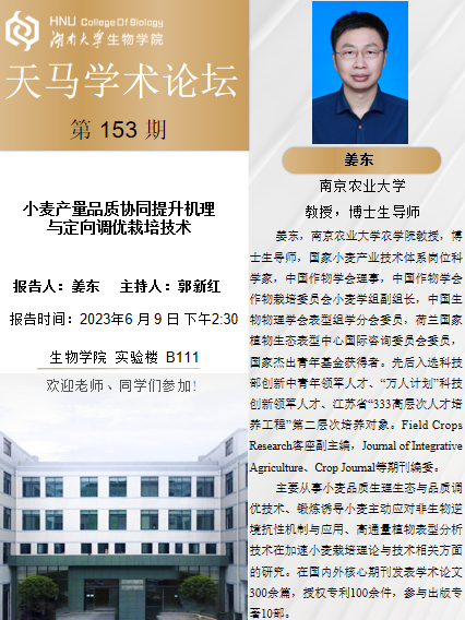 學(xué)術(shù)地點(diǎn) 生物學(xué)院實(shí)驗(yàn)樓B111 主講人 姜東