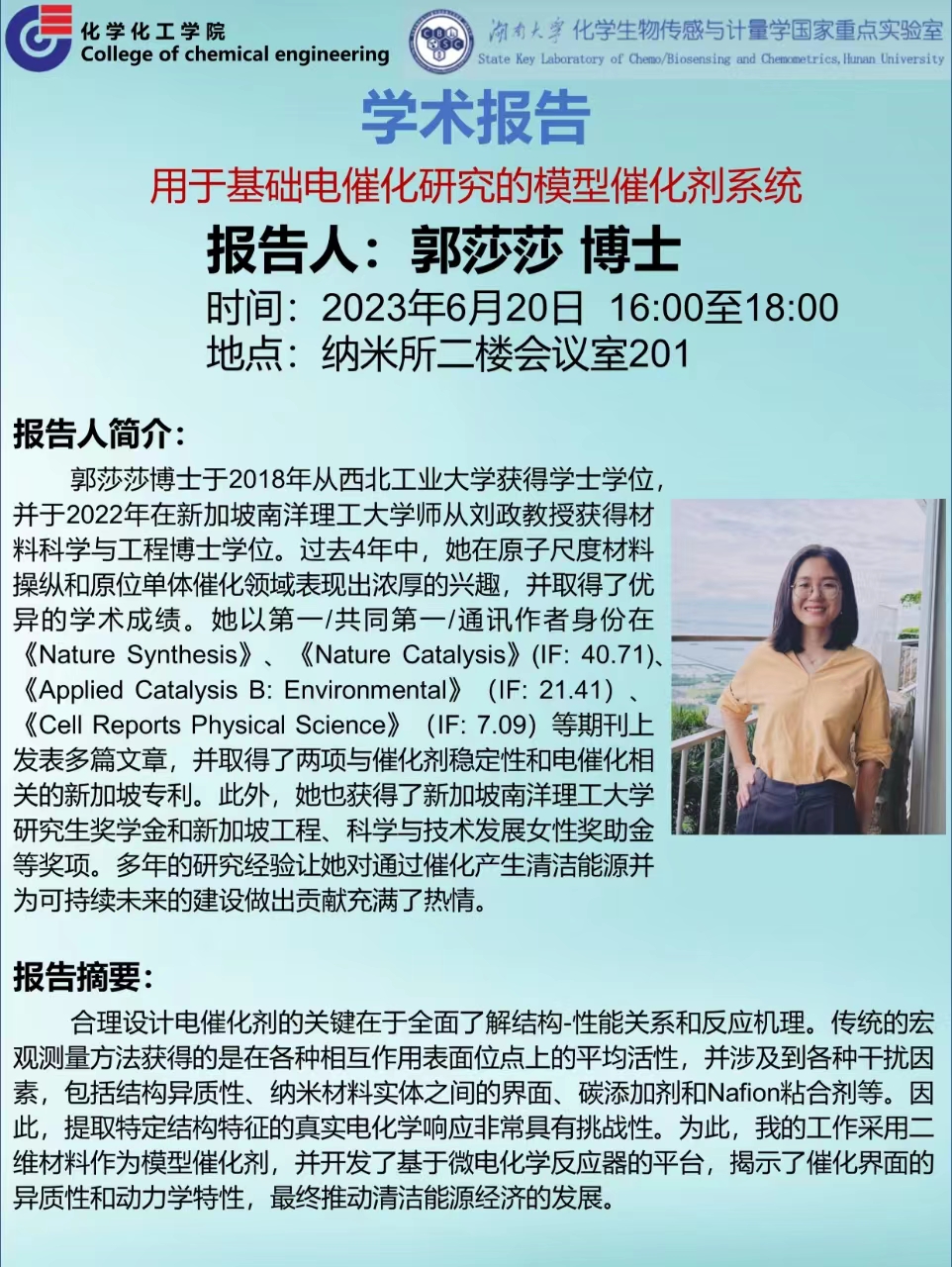 學術地點 納米所二樓會議室201 主講人 郭莎莎