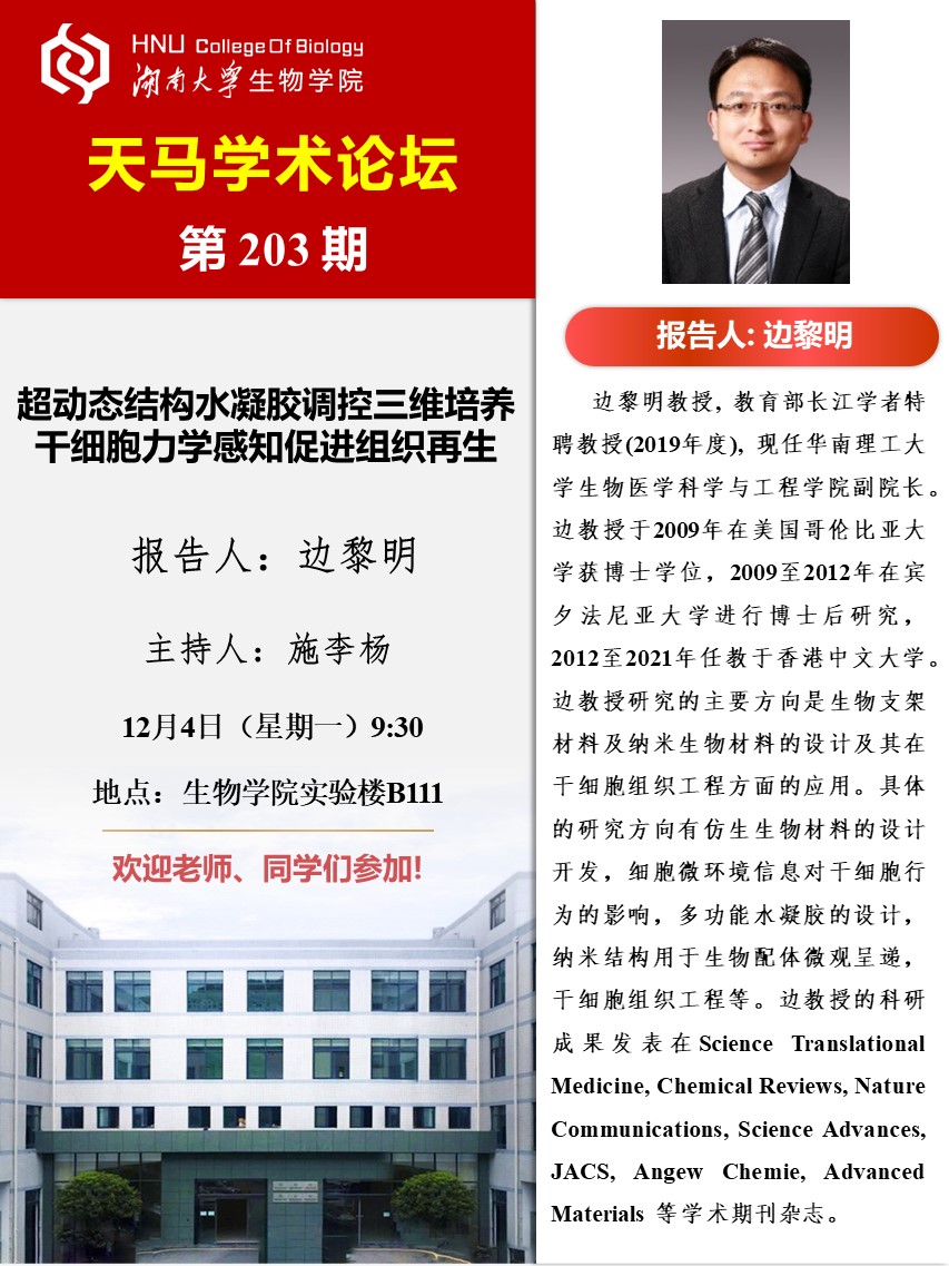 學術地點 生物學院辦公樓108 主講人 邊黎明