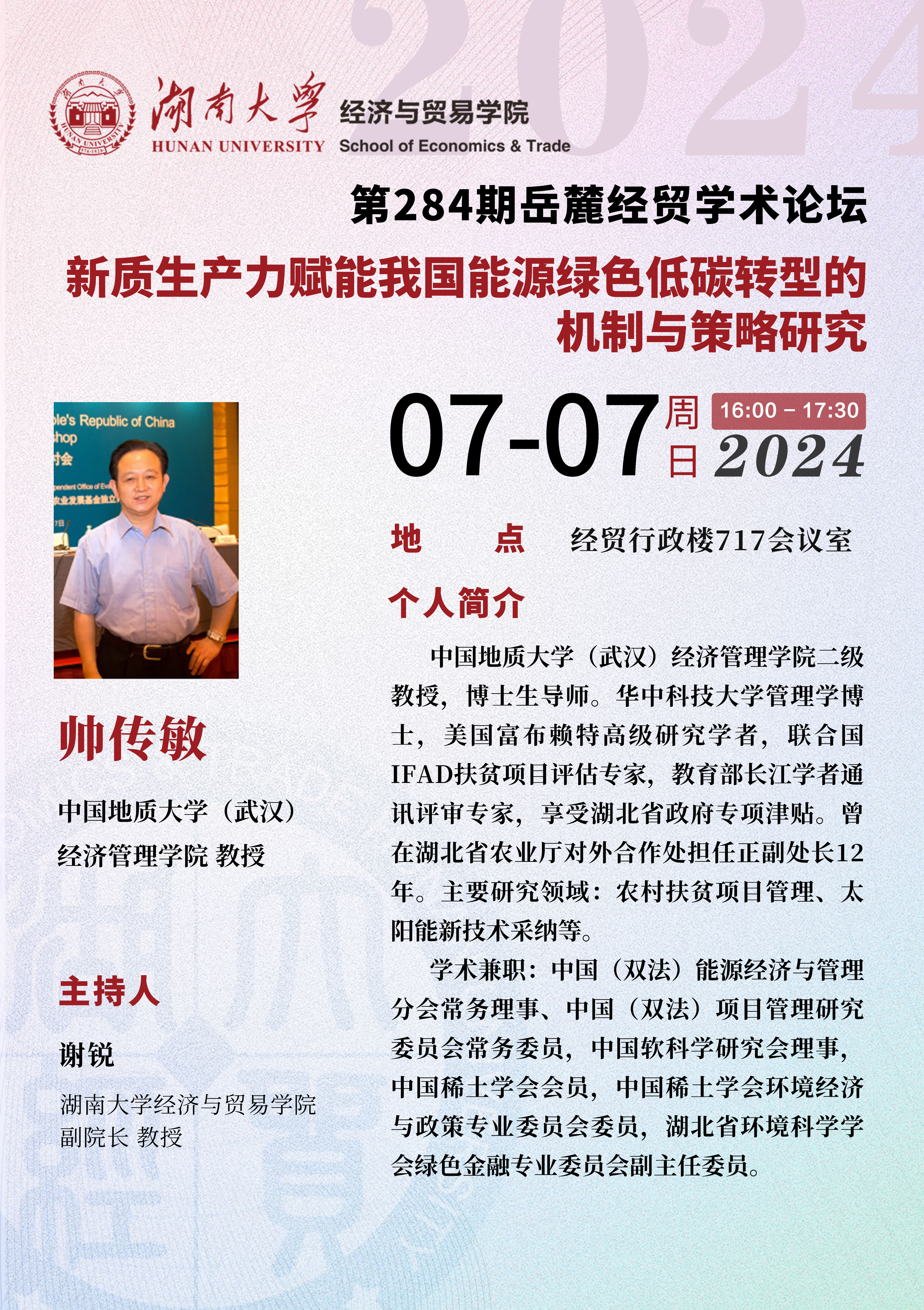 學術地點 經貿行政樓717會議室 主講人 帥傳敏