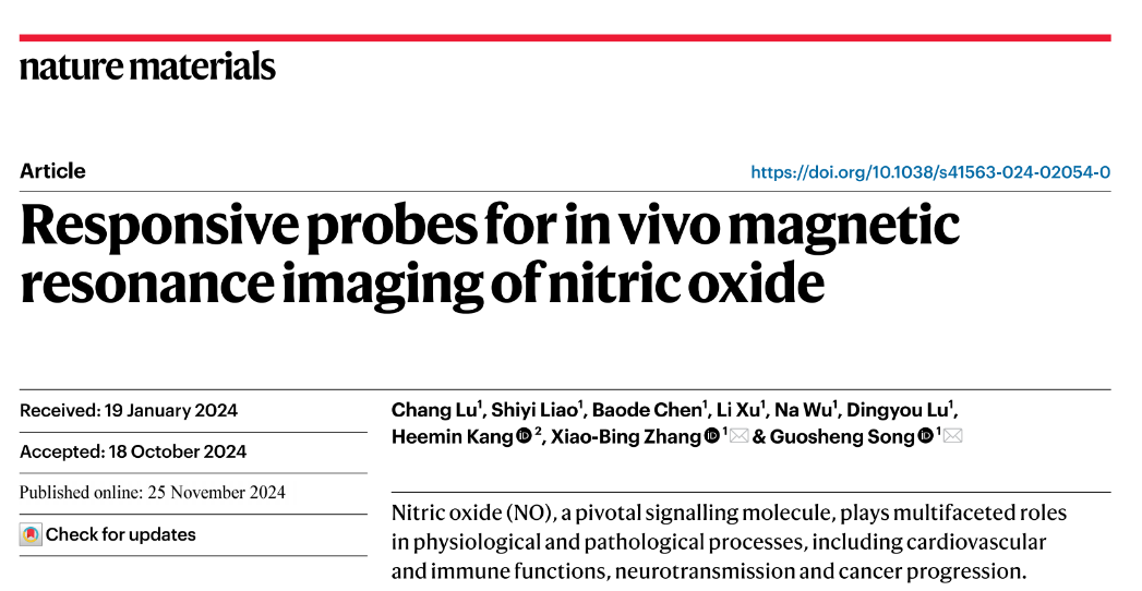 2024/11/27化工院宋國勝教授和張曉兵教授在磁共振分子影像研究中取得重要突破一氧化氮(NO)是人體中重要的信號分子,參與調節血流、維持細胞活力及保護心肌和神經細胞等多種生理過程。NO 信號異常與心腦血管疾病、神經退行性疾病、肝炎、糖尿病和癌癥等密切相關。研究表明,NO 的生物學效... -